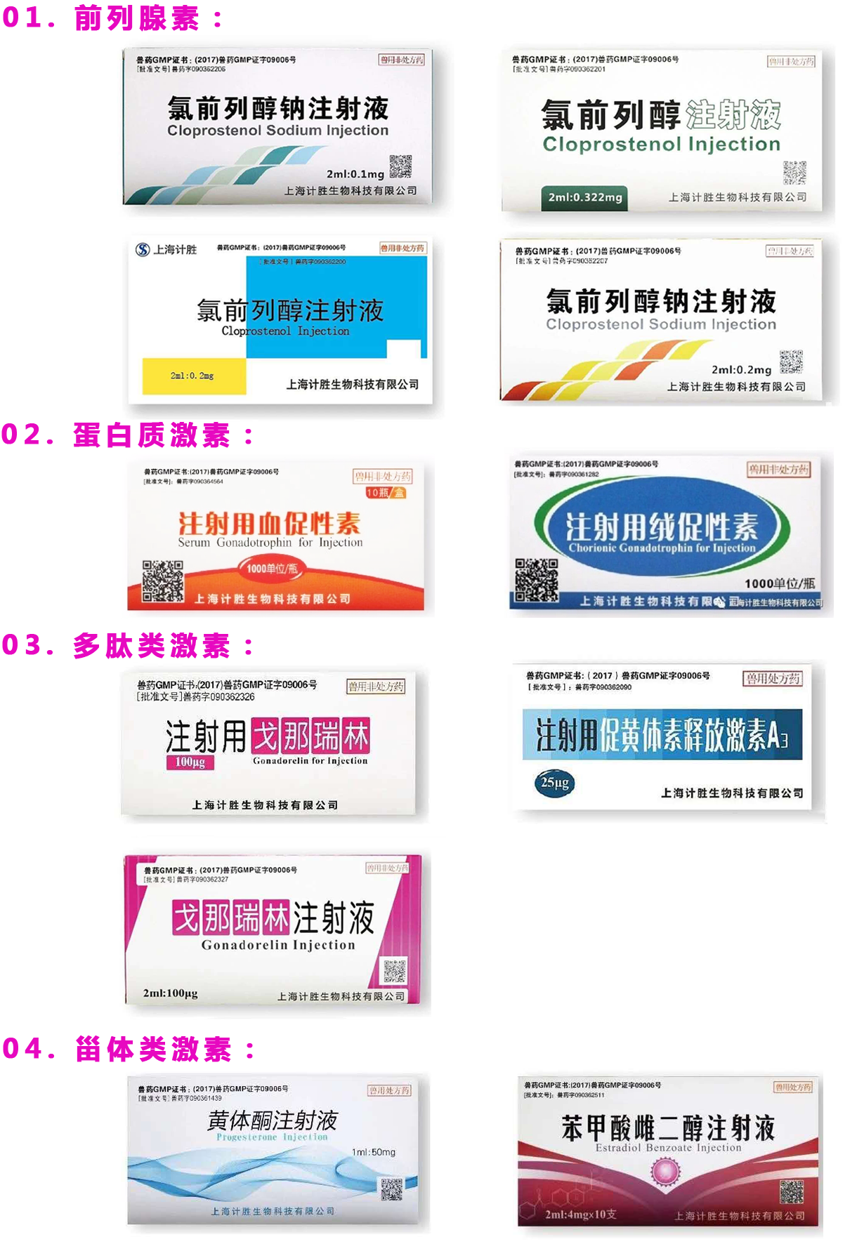 上海計勝生物科技有限公司是一家重建的獸藥企業,專業生產動物生殖激素類產品。公司發源于上海市計劃生育科學研究所的獸藥研究工作,是經三十余年的產業運作而逐步發展起來的高新技術企業。